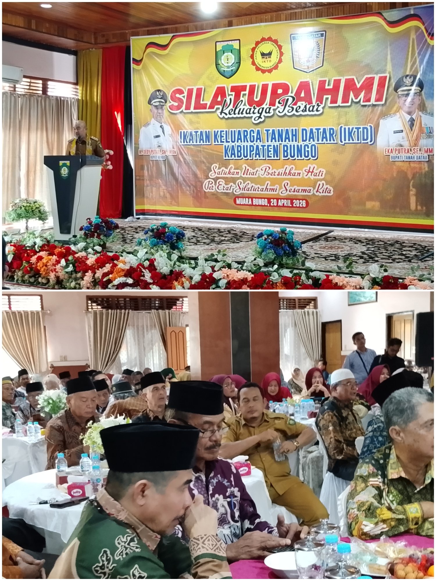 Bungo Makalam news. com- Bupati Bungo, H. Dedy Putra, menyambut hangat kunjungan Bupati Tanah Datar, Eka Putra, dalam acara silaturahmi Ikatan Keluarga Tanah Datar (IKTD) yang digelar di Wisma Alisudin, Senin (20/04/2026).