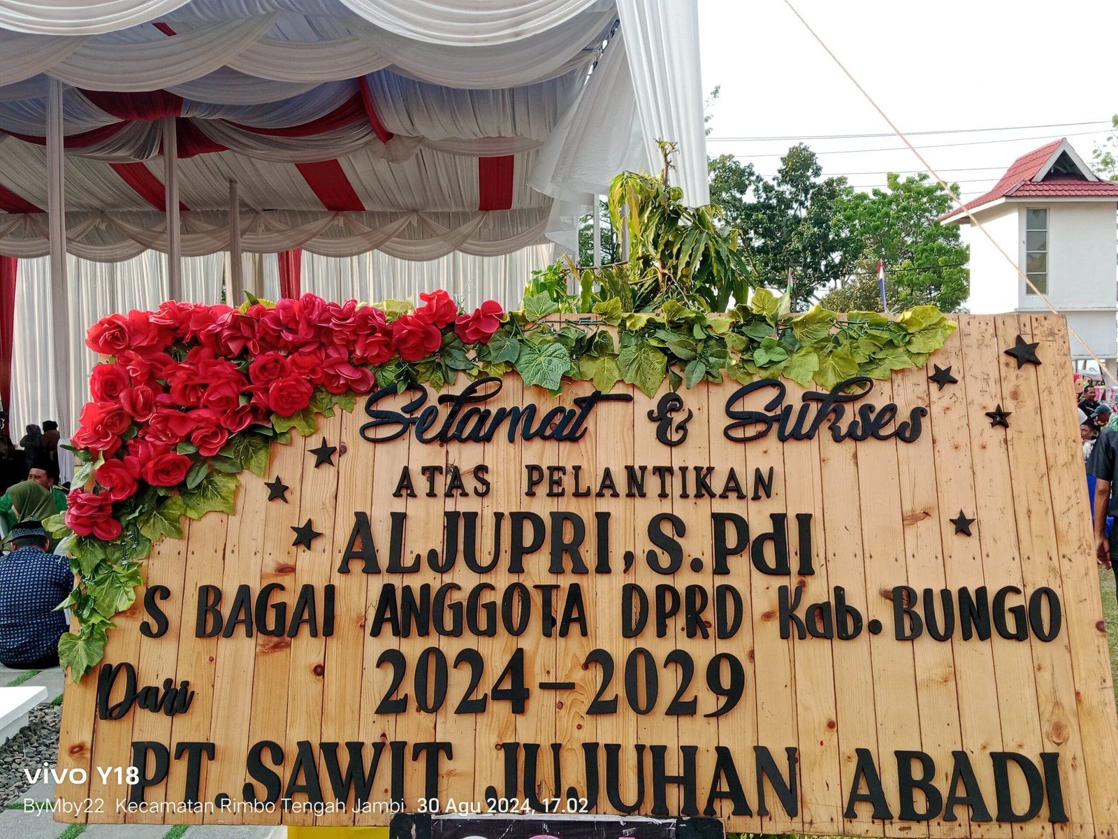 Dan pada pelaksanaan Pemilu Legislatif salah satu Putra terbaik kabupaten Bungo Al Jupri , S.Pd.I sekaligus sekretaris DPC PDI perjuangan kembali mendapatkan kepercayaan dari masyarakat untuk mengemban seluruh aspirasi masyarakat Bungo khususnya Daerah Pemilihan (Dapil) IV dan tepatnya hari Jum’at tanggal 30 Agustus 2024 secara resmi diambil sumpah/janji secara syah menjadi anggota DPRD masa jabatan 2024-2029 bersama anggota lainnya.