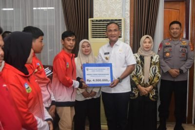 Makalamnews.com, Sarolangun – Bupati Sarolangun H Hurmin menyerahkan bonus kepada para atlit berprestasi beserta para pelatih yang telah mengharumkan nama baik Kabupaten Sarolangun di ajang Pekan Paralimpik (PEPARPROV) Jambi VIII Tahun 2023, Rabu (18/06) di Rumah Dinas Bupati Sarolangun.
