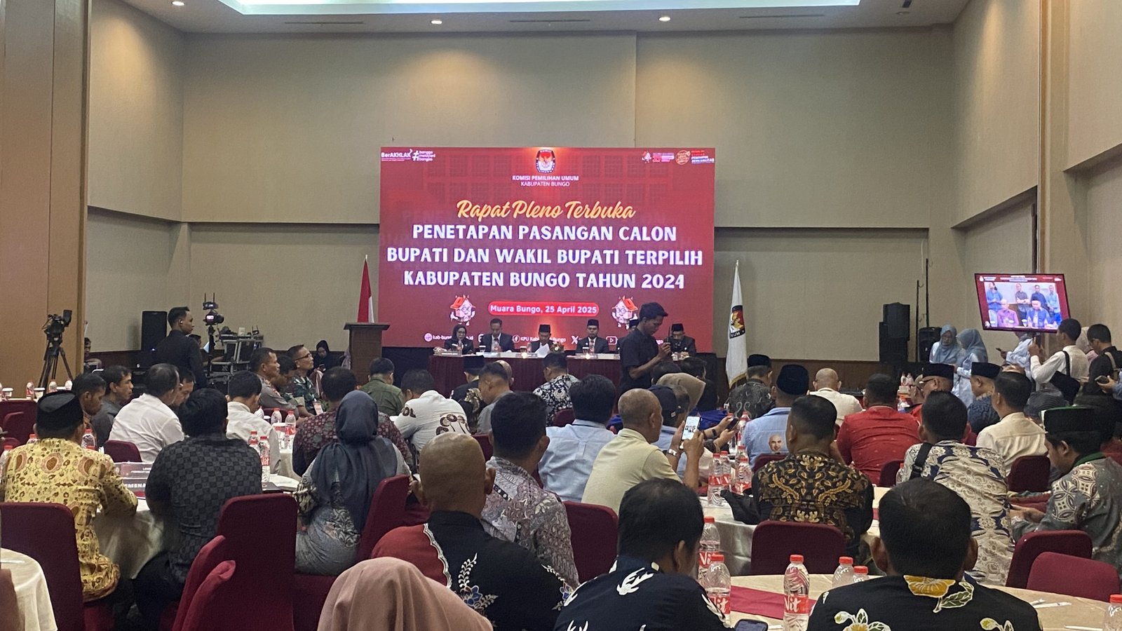 Hal tersebut disampaikan KPU Bungo pada rapat pleno terbuka penetapan pasangan Calon Bupati dan Wakil Bupati terpilih yang dihadiri oleh kedua tim pasangan calon dan sejumlah pihak terkait.