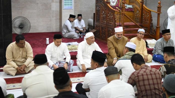 Makalamnews.com, Sarolangun – Pemerintah Kabupaten Sarolangun menggelar kegiatan shubuh Akbar sekaligus peringatan Isra’ dan Mi’raj Nabi besar Muhammad SAW bersama Syekh Ahmed Al-Sharif dari Universitas Al-Azhar, Kairo, Mesir, Jumat (23/01) di Mesjid As-Sulton Sarolangun.